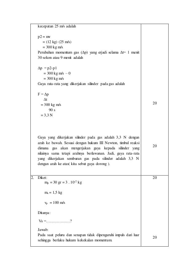 Hitunglah besarnya impuls dari gaya pemukul tersebut. Momentum dirumuskan sebagai hasil kali massa dan kecepatan.