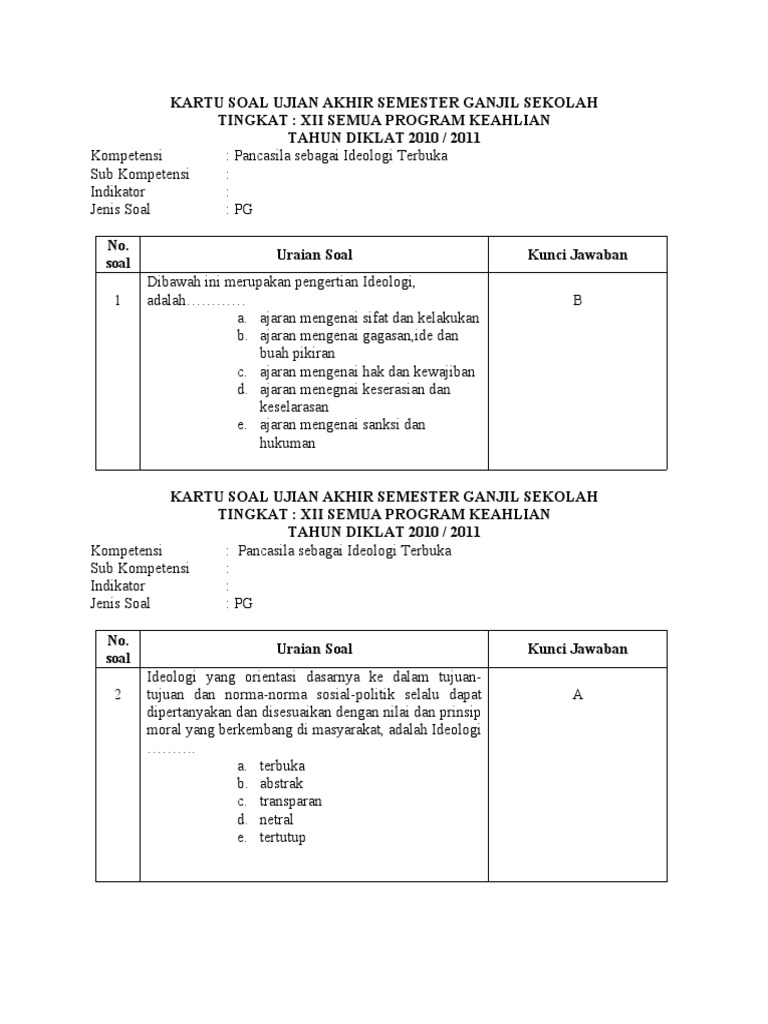 Soal Pilihan Ganda Sosiologi Kelas Xi Beserta Jawabannya ...